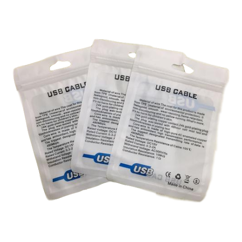 白色打孔數(shù)據(jù)線包裝袋,印刷采用銅版印刷,圖案清晰不重影。產(chǎn)品足斤足兩,不偷工減料,大力拉扯不變形不開裂,承重高。印刷采用里印印刷工藝,顏色鮮艷不掉色。